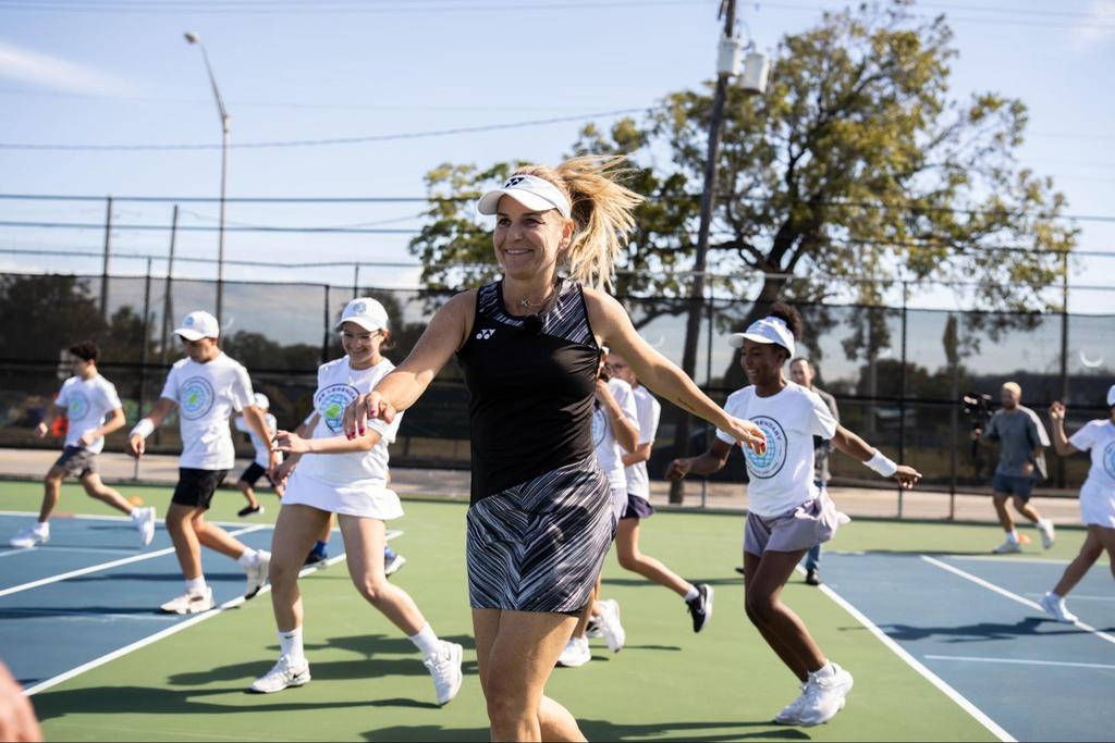 Participants from the Dallas Tennis Association NJTL chapter focusedon building confidence in one’s own abilities and expressing gratitude toward the people who support us. Kids shared personal stories, reflected on their tennis journeys, and worked directly with Clijsters on court, where she emphasized positive self-talk and resilience through every drill.