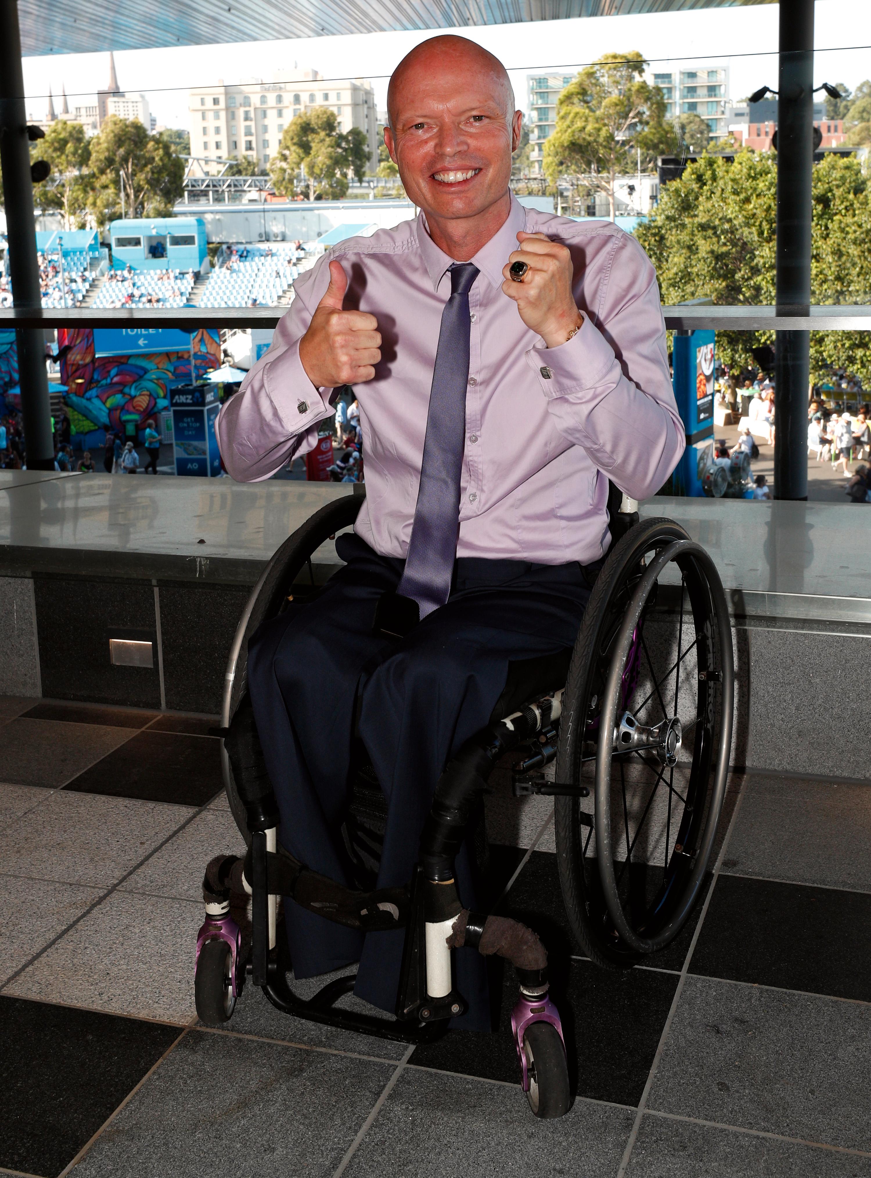 Australian wheelchair tennis star David Hall was the guest of honor at a special gathering at the Australian Open on January 22, when family, friends, and special guests gathered to see him receive his official International Tennis Hall of Fame ring.
