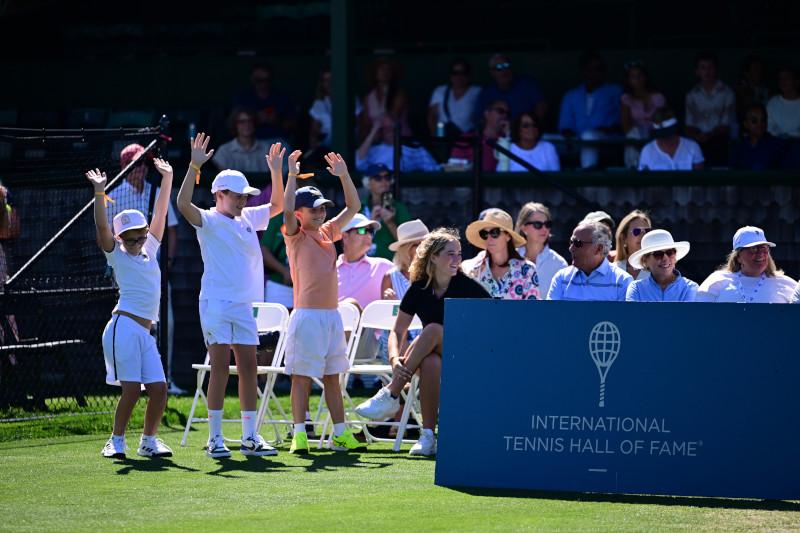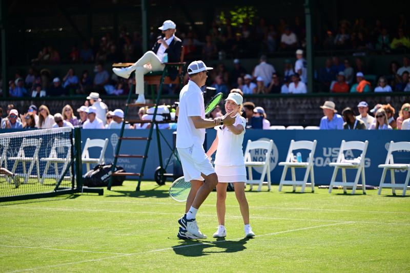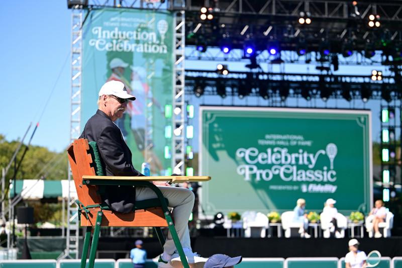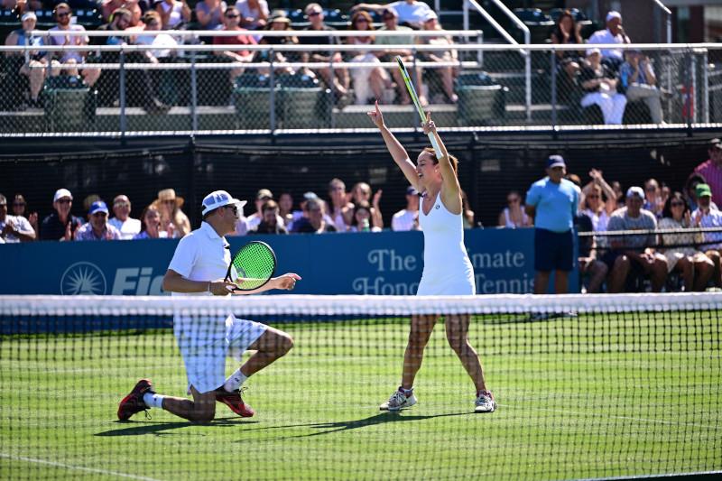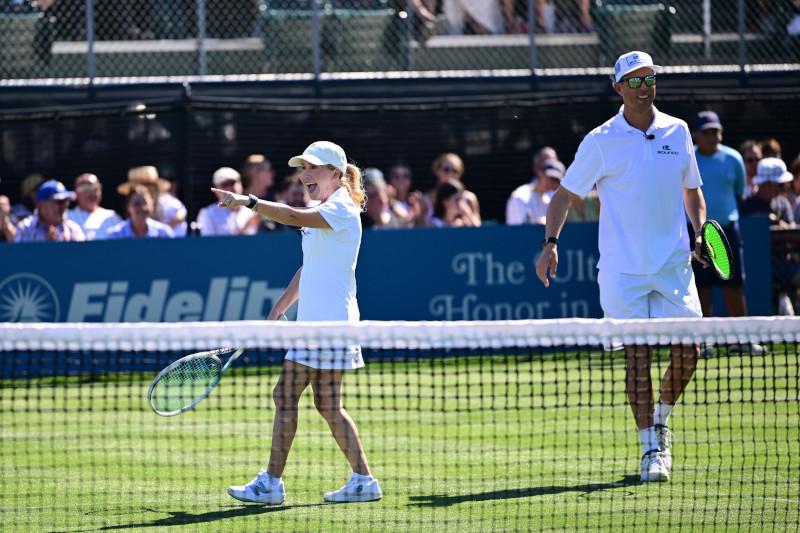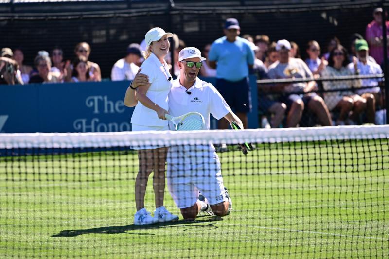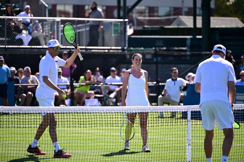 But while it’s one thing for a pro-celebrity event to take place at a longstanding club, new facility, or even a private court, the convergence of tennis history and contemporary fame becomes altogether different when it takes place at the International Tennis Hall of Fame (ITHF), inside Bill Talbert Stadium, in front of more than 2,000 fans. So it was that this Friday afternoon, at the venue where the past lives and breathes most vividly, with Maria Sharapova and the Bryan brothers set to be inducted into the ITHF Saturday evening, the Hall of Fame Celebrity Classic presented by Fidelity Investments nicely blended laughter and legends.