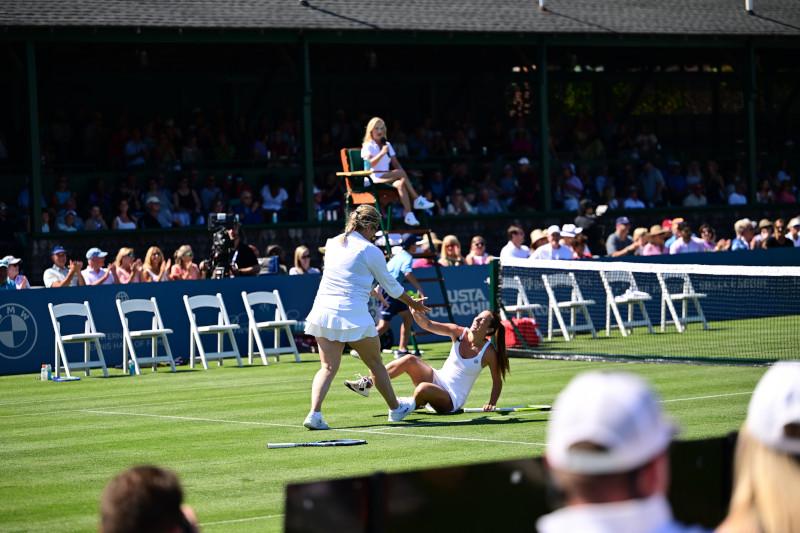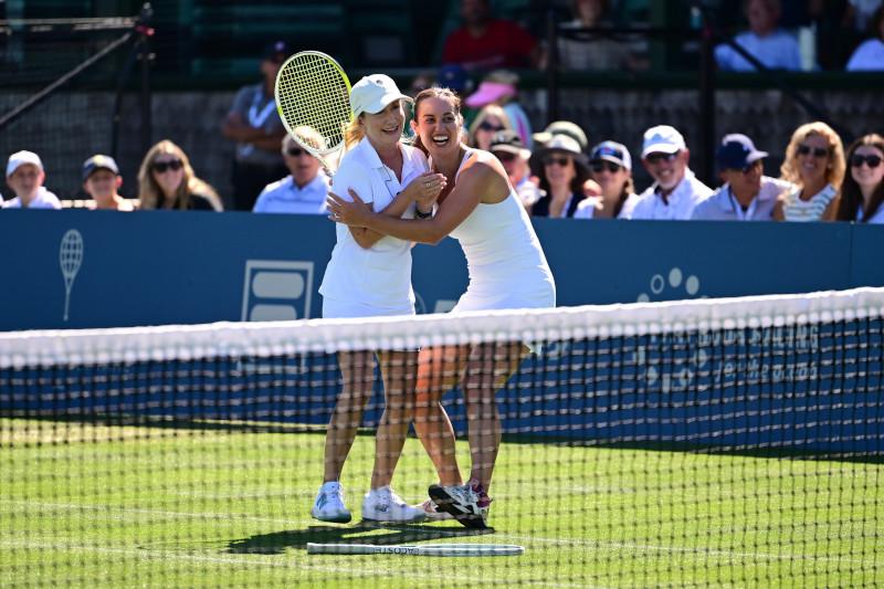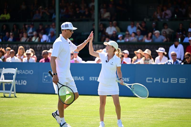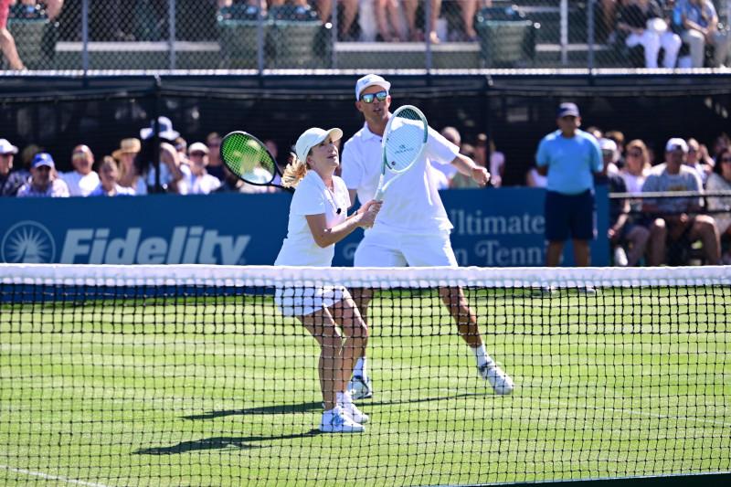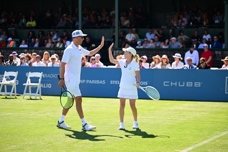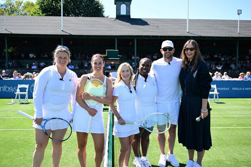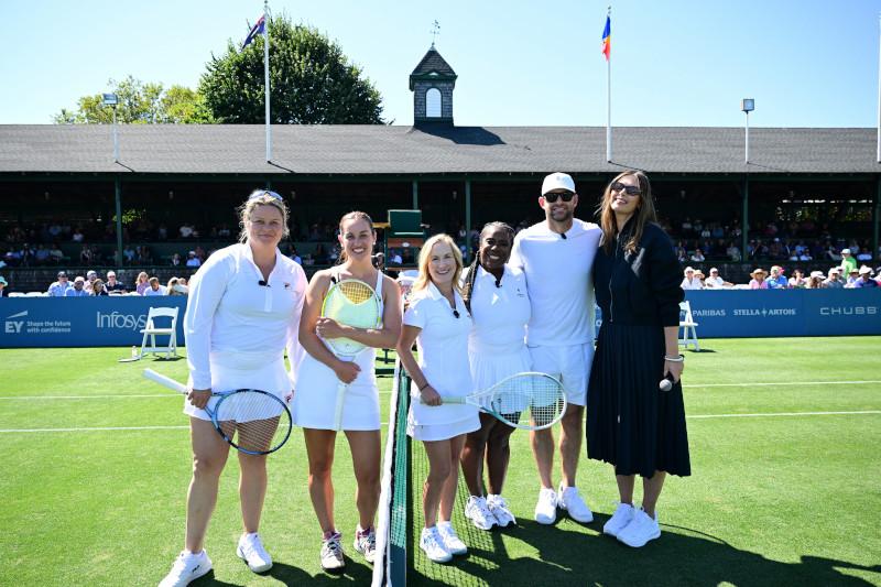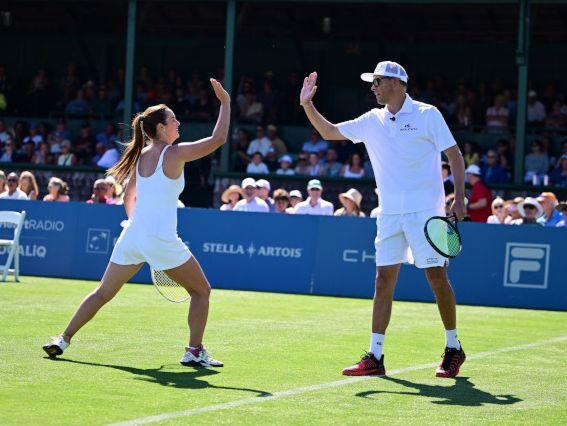 But while it’s one thing for a pro-celebrity event to take place at a longstanding club, new facility, or even a private court, the convergence of tennis history and contemporary fame becomes altogether different when it takes place at the International Tennis Hall of Fame (ITHF), inside Bill Talbert Stadium, in front of more than 2,000 fans. So it was that this Friday afternoon, at the venue where the past lives and breathes most vividly, with Maria Sharapova and the Bryan brothers set to be inducted into the ITHF Saturday evening, the Hall of Fame Celebrity Classic presented by Fidelity Investments nicely blended laughter and legends.