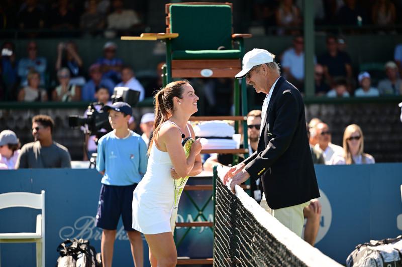 Later came fun matches featuring the Bryan brothers and ’07 inductee Arantxa Sanchez Vicario, as well as a lively set of shot-making pitting Bob, Mike, and their fellow members of America’s ’07 championship Davis Cup team, Roddick and James Blake. Hall of Fame emcee Brett Haber skillfully chaired that one. Former ITHF president and ’87 inductee Stan Smith, sharply clad in his Hall of Fame blazer and signature sneakers, also enjoyed a stint in the chair. With all of the players on their best, most humorous and light behavior, there was zero need to apply any Code of Conduct regulations. Said Austin, “Being here is the culmination of being in the sport.”