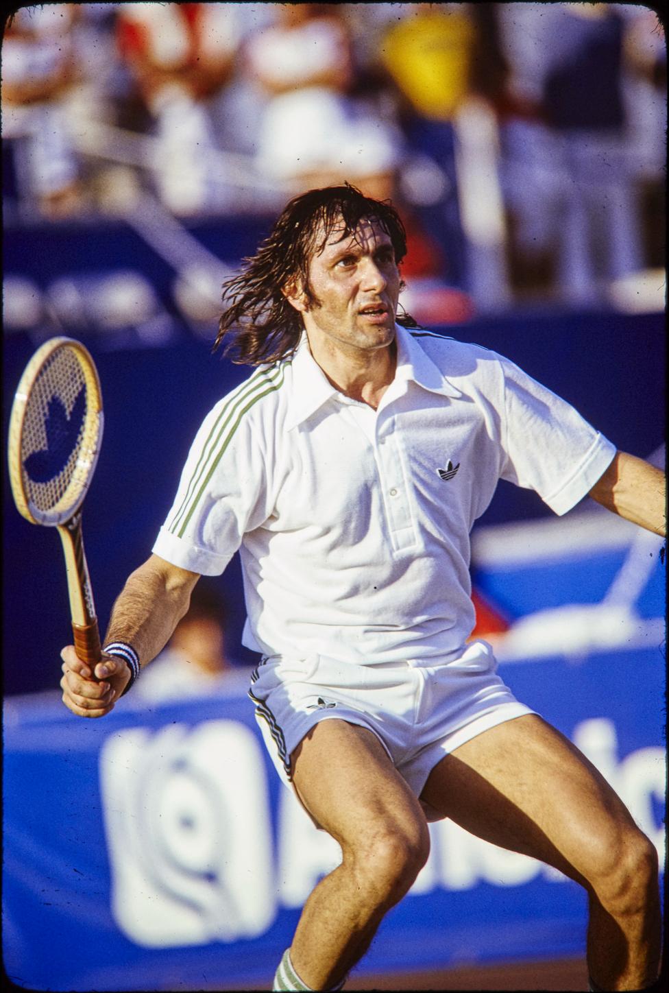 Năstase’s antics often took away from his exceptional tennis aptitude. He had an erratic temperament; controversy didn’t find him, Ilie Năstase found controversy and it often put him at distinct odds with linesmen and umpires. In some cases, Năstase would humorously protest line calls playfully, like rubbing out the ball mark on clay courts with the toe of his tennis shoe. In other cases, his questioning of a ruling wasn’t so cordial and it led to fines, disqualifications and suspensions. Năstase was also known as “Nasty,” as much a defining description as any. His game was “nasty,” a slang definition for “deft” and his combative personality was not always pristine, but dark and unpredictable. But the sum parts of his career were extraordinary: He is one of just six players in history to win more than 100 professional titles, 58 coming in singles, which is tenth best in history, and 45 in doubles. That’s for openers.