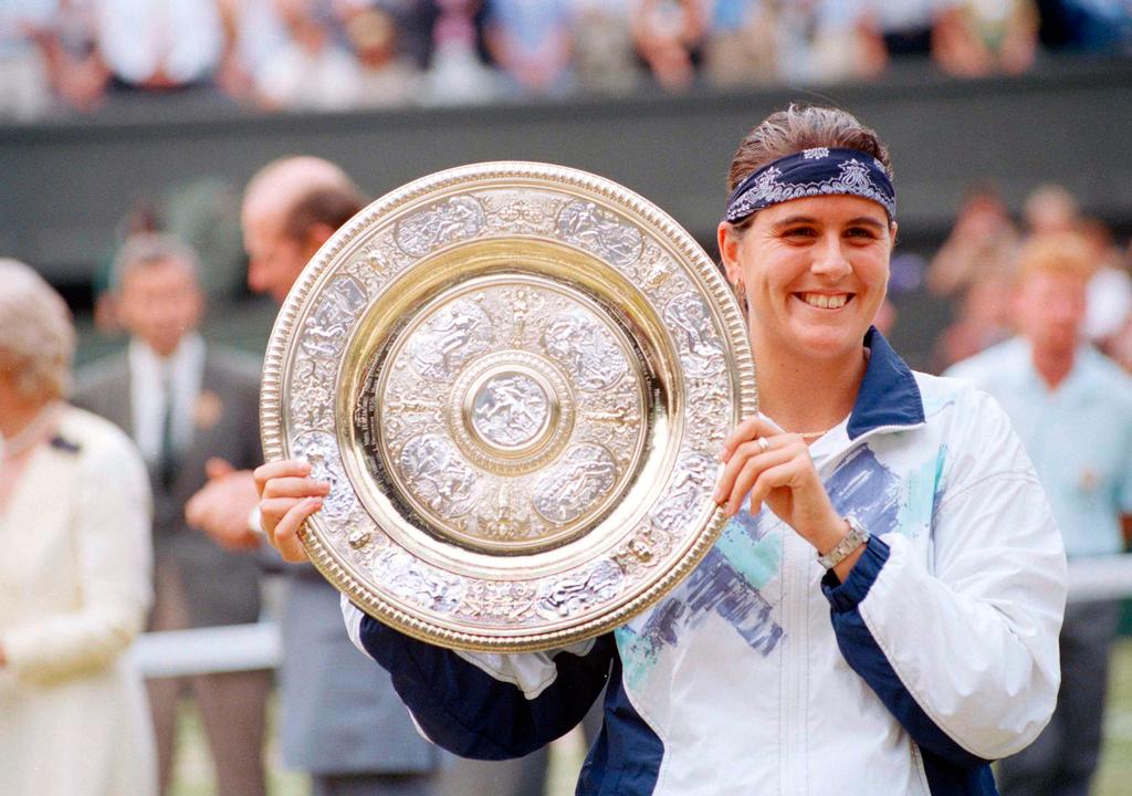 Daunting a situation as this was, Martinez handled it with exceptional poise – and precision. Through the inevitable ups and downs that often make a Wimbledon final so captivating, Martinez withstood Navratilova’s attack, most notably with several crackling crosscourt backhands. “Today she passed me as well as anybody ever has,” said Navratilova. The final score: 6-4, 3-6, 6-3. “Wimbledon, it changes many things,” says Martinez. “It’s a life changer, because winning a Grand Slam is the most important thing that you can do, and after that you start believing a lot in yourself. You just continue with your career, but that gives you the extra confidence.”