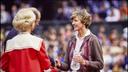 Between 1961 and 1975, Court was the world’s top ranked player, a distinction that made her a target for the hustling tennis promoter Bobby Riggs, who challenged her to a tennis match in Ramona, California on May 13, 1973, which happened to fall on Mother’s Day. The made-for-television event on ABC brought out a gallery of celebrities and tennis stars, including John Wayne, Don Budge, Pancho Segura, Casals, and more each who had an opinion on who would win. Court did not take the match particularly seriously and wasn’t prepared for Riggs, who hit soft and short and used dinks and lobs to defeat Court, 6-2, 6-1, in what was dubbed “The Mother’s Day Massacre.” Court’s loss led to Riggs and King meeting in the famous “Battle of the Sexes” four months later in Houston’s Astrodome.