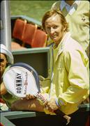 The US Open final was delayed several days because of rain storms and when play commenced, conditions were slippery and Laver was sliding all over the grass court, allowing Roche to take the first set, 9-7. “In any final if you win the first set you feel like you’re well on the way, but of all the players, Rod had the unbelievable ability to get out of tough situations and he had such great belief in his game.” At a changeover, Laver put on a pair of spiked shoes which he said made him feel more comfortable and led him to winning, 7-9, 6-1, 6-2, 6-2 for the clinching Grand Slam victory at the US Open. A “relieved, happy, and satisfied” Laver leapt over the net, which was rare for him, becoming a two-time Grand Slam champion. After 1969, Laver concentrated on playing World Championship Tennis (WCT). His Open Era career from 1968 to 1976 saw him win 77 tournaments.