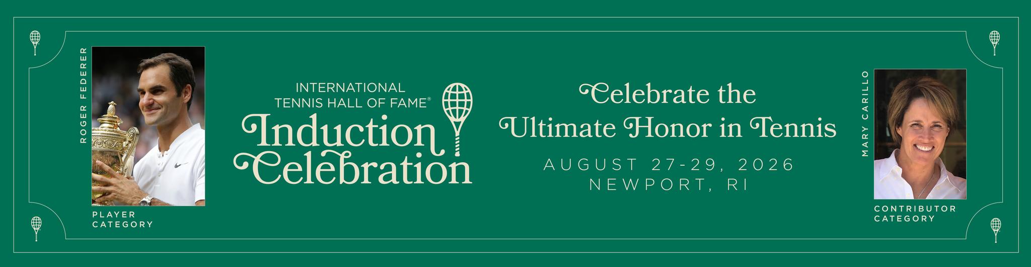 Join us August 27–29, 2026 in Newport, Rhode Island as we honor two of tennis’s most inspiring figures — Roger Federer and Mary Carillo (contributor category) — at the International Tennis Hall of Fame Induction Celebration. This unforgettable weekend will bring together fans, players, and legends for a series of special events celebrating excellence, sportsmanship, and the enduring spirit of the game.