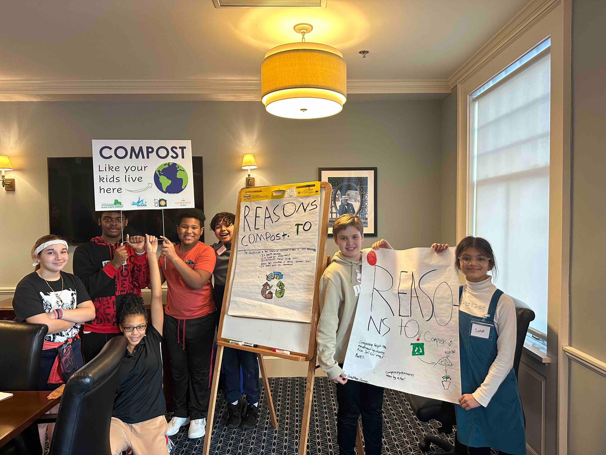 Students created a Compost Crew to raise awareness of their efforts. Among other things, the Compost Crew designed informative posters and practiced presenting their pitches to meet with Hall of Fame employees. The Compost Crew received a unanimous vote that each employee would be willing to compost. After placing compost bins in the kitchen of the ITHF main offices and elsewhere on the property, each Wednesday the Compost Crew collected the compost and placed it curbside to be picked up by Clean Ocean Access.