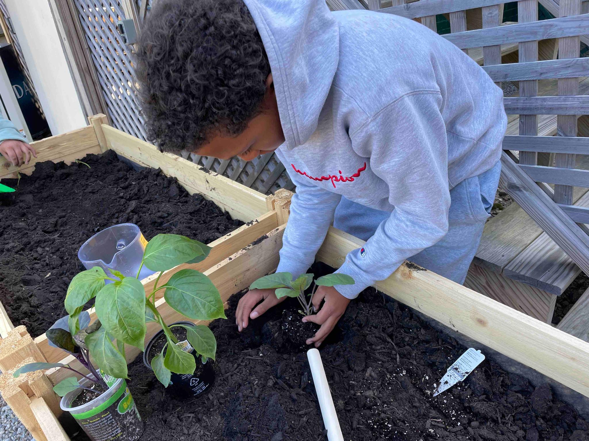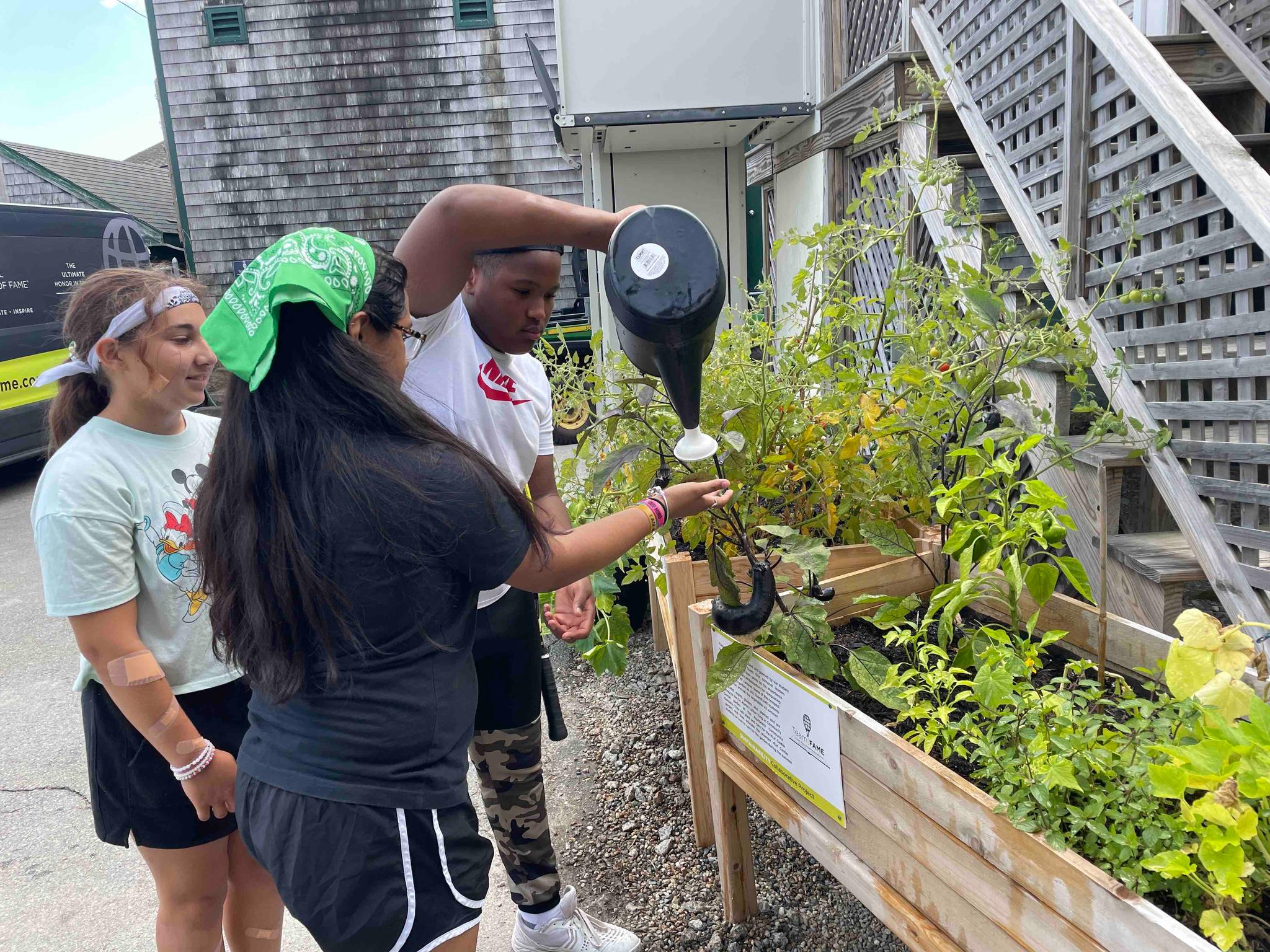 11th Hour Racing additionally provided support for two raised garden beds, assembled by TeamFAME students to sit outside the Canfield Learning Center. Here, students planted bean seeds, eggplant, tomatoes, cucumbers, yellow squash, zucchini, and pumpkins. These vegetables have been carefully cared for all summer long.