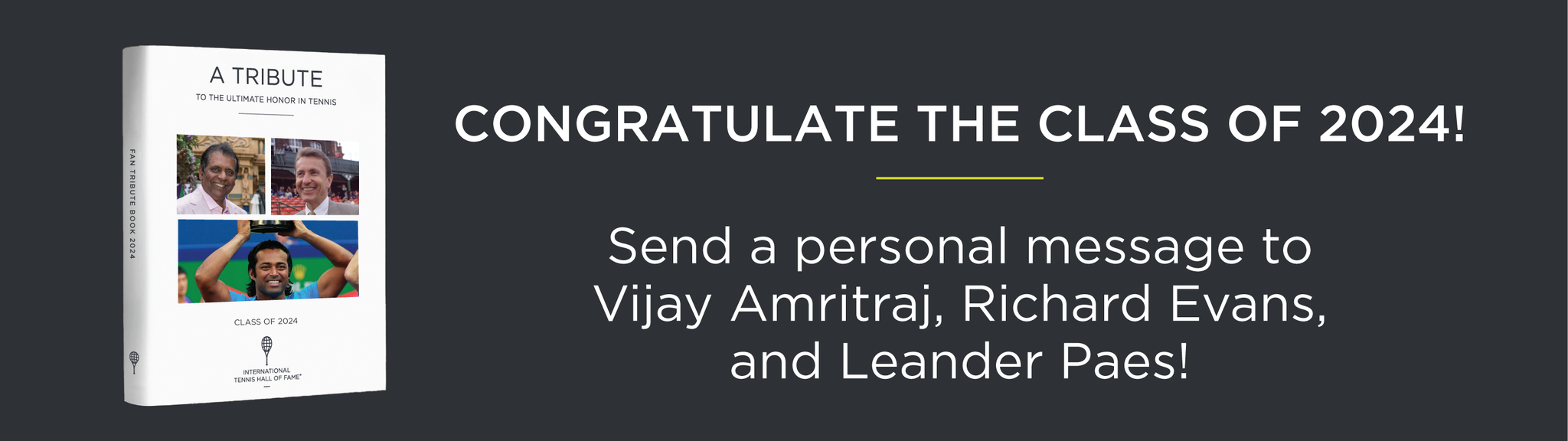 What did Vijay Amritraj, Richard Evans, and Leander Paes mean to you? How did they affect your life? What was your favorite moment? What did you learn from them? Now's your chance to share a special congratulations to this years incoming inductees, Vijay Amritraj, Richard Evans, and Leander Paes, with our Fan Tribute Book!